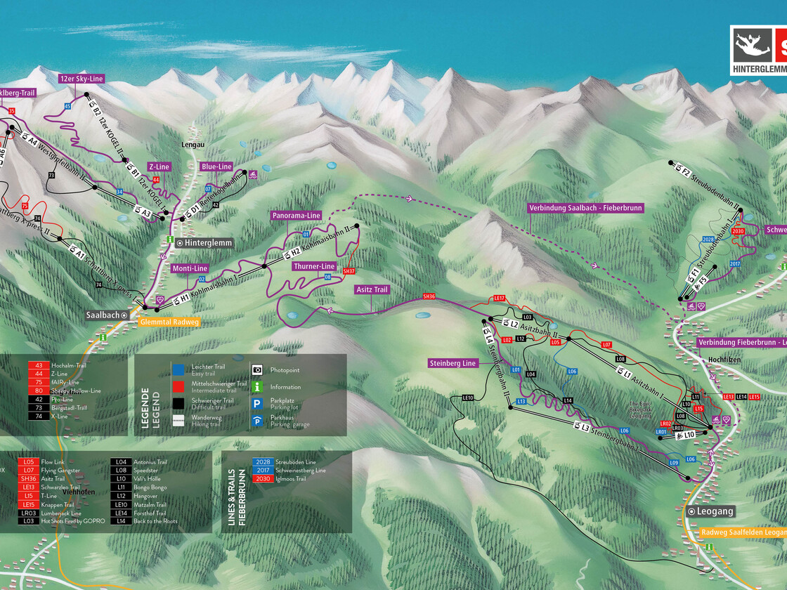 "THE CHALLENGE - Bike your limit" is the name of tdhe new challenge in Austria's largest bike-region that only the best can master. Who can manage to ride the entire area around Saalbach Hinterglemm Leogang Fieberbrunn in one day? Thanks to modern lifts, it can be done in one day! Be prepared for pure trail pleasures in Saalbach Hinterglemm and challenging bike park lines in Leogang.