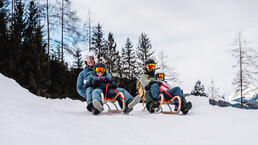 Before starting your sledging adventure at Biberg, you first have to get up to the starting point of the toboggan run. You can either hike through the snow-covered landscape to get there or use the shuttle service to Berggasthof Huggenberg. The toboggan run starts at Bockareit Stubn valley station. If you’re in the mood for some additional exercise, you can start hiking from there instead of from the mountain restaurant.