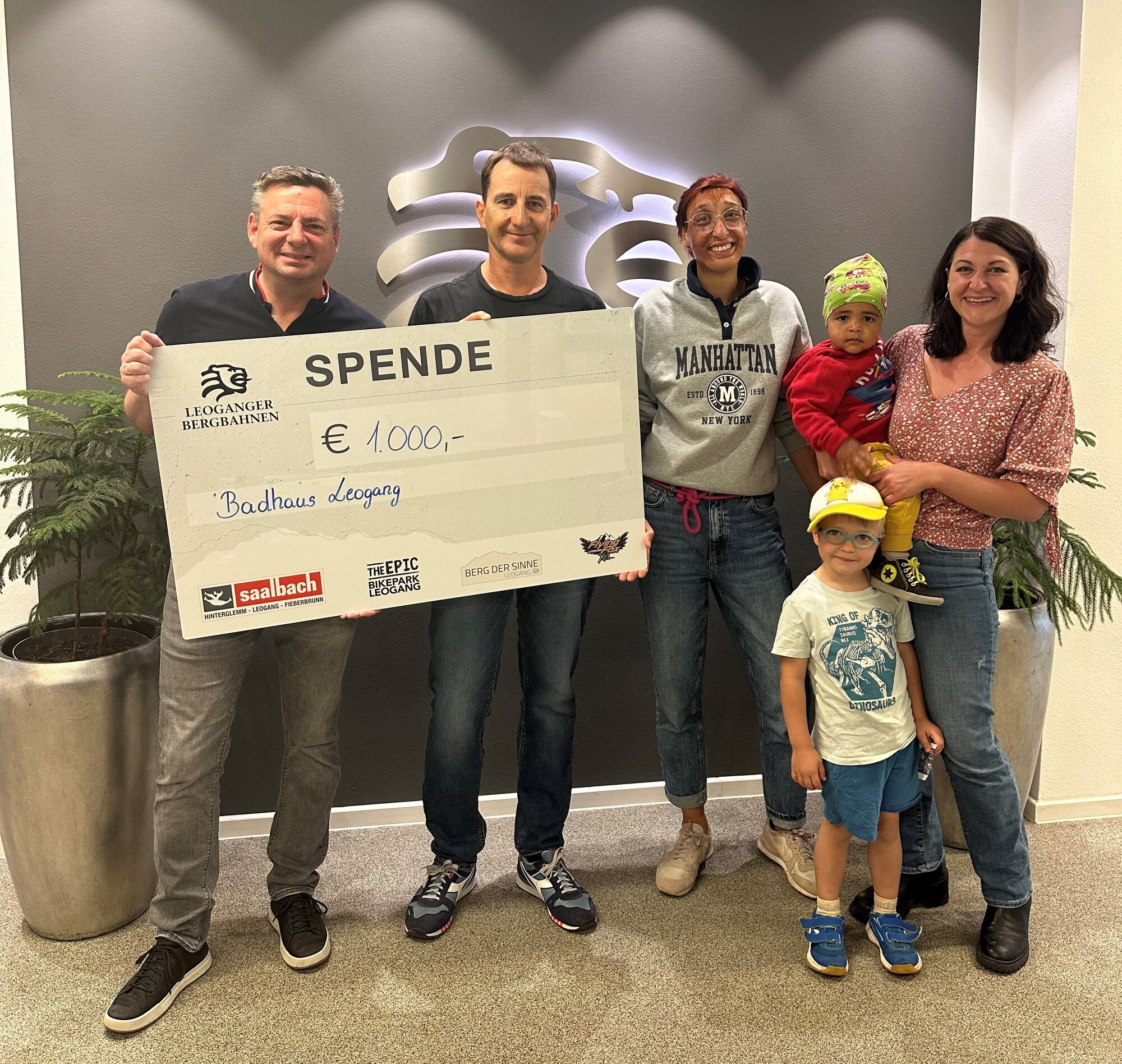 A wonderful sign of solidarity: Hubert Eberhard, an employee of the Leoganger Bergbahnen, donated part of his income to the Badhaus Leogang. To emphasize this commitment, the Leoganger Bergbahnen increased the amount to a total of €1,000.