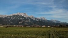 Geschützt unter einer kleinen Baumgruppe steht das Pestkreuz, welches an die Toten der Pestseuche in Saalfelden erinnert. Dort angekommen, sollte man sich auf jeden Fall einen kurzen Moment nehmen, um die Ausstrahlung dieses Kraftplatzes zu genießen. Danach geht es durch den Wald kurz aber stark bergab, bis man entlang der Saalach nach rechts Richtung Euring läuft. Nach der Überquerung der Euringer Brücke biegt man rechts auf einen Schotterweg ab, welcher entlang eines Bächleins, vorbei an schönen Holzstadeln und neben endlos weiten Wiesen bis an den Waldrand führt - definitiv eine weitere einzigartige Aussicht, besonders im Licht der Abendsonne.