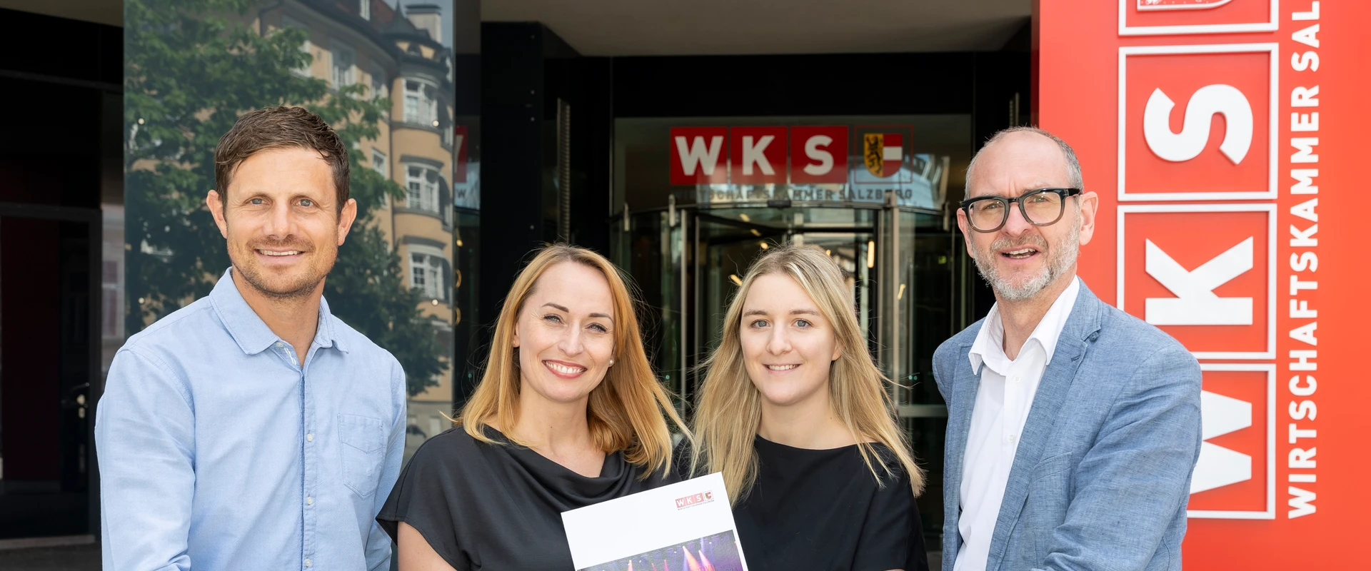 Bild v.l.n.r.: Marco Pointner, Veranstalter Jazzfestival Saalfelden; Daniela Neumayer, Produktionsleiterin Jazzfestival Saalfelden; WKS Studienautorin Vanessa Kahn und Dr. Christoph Fuchs von der Stabstelle Wirtschafts- und Standortpolitik der WKS.