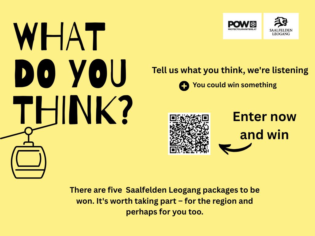 Der Klimawandel verändert unsere Bergwelt spürbar – und damit auch das Wintersporterlebnis unserer Gäste. Als Tourismusregion möchten wir diese Veränderungen aktiv gestalten und fundierte Maßnahmen für die Zukunft entwickeln. Im Rahmen der Fokusjahre Saalfelden Leogang führen wir eine Gästebefragung durch, damit diese ein Erfolg wird, brauchen wir Eure Hilfe.