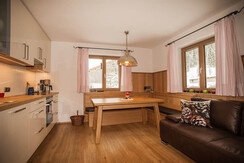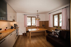 Unser Appartement ist gemütlich, zweckmäßig und mit modernen, praktischen Möbeln eingerichtet. Die Gesamtnutzungsfläche von 80 m² bietet Platz für 2 bis 7 Personen. Unser Appartement befindet sich im Parterre und ist südseitig ausgerichtet. Details Vorraum mit Garderobe und Schuhschrank Gemütlicher Wohn-Essbereich. Ein ausziehbares Sofa bietet Platz zum Schlafen für 2 Personen. Vollausgestattete, moderne Küche mit Geschirrspüler, Ceran-Kochfeld, Backofen, Kaffeemaschine, Wasserkocher, Kühlschrank mit Gefrierfach, komplettes Speise- und Kochgeschirr sowie Gläsersortiment, sämtliche Küchenutensilien, Spülmaschinentabs, Geschirrspülmittel, Geschirrtücher, Besen und Kehrschaufel Badezimmer (Schminkspiegel, Haarfön, Hand- und Duschtücher, Badevorleger) Zwei geräumige Schlafzimmer mit bequemen Doppelbetten sowie einem Einzelbett in einem der Schlafzimmer. Die Räume bieten ausreichend Platz für Ihre Garderobe. (Betten mit Bettwäsche bezogen) Behagliche Fußbodenheizung in allen Räumen Kostenloser W-LAN-Internetzugang sowie digitales TV Trockenraum - Skikeller bzw. abschließbarer Bikeraum Parkplatz direkt vor dem Haus (kostenlos)