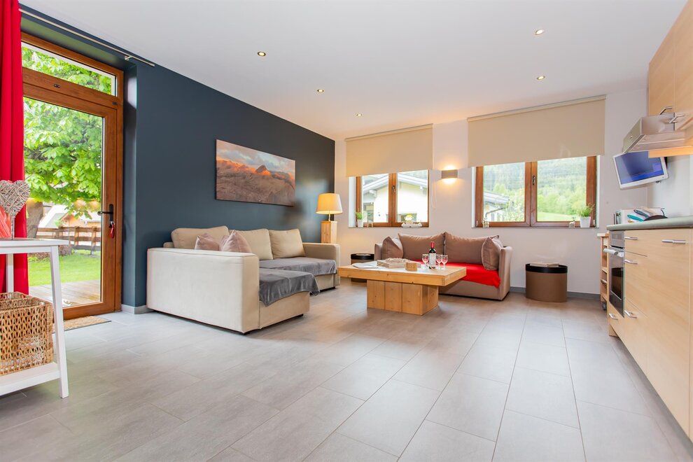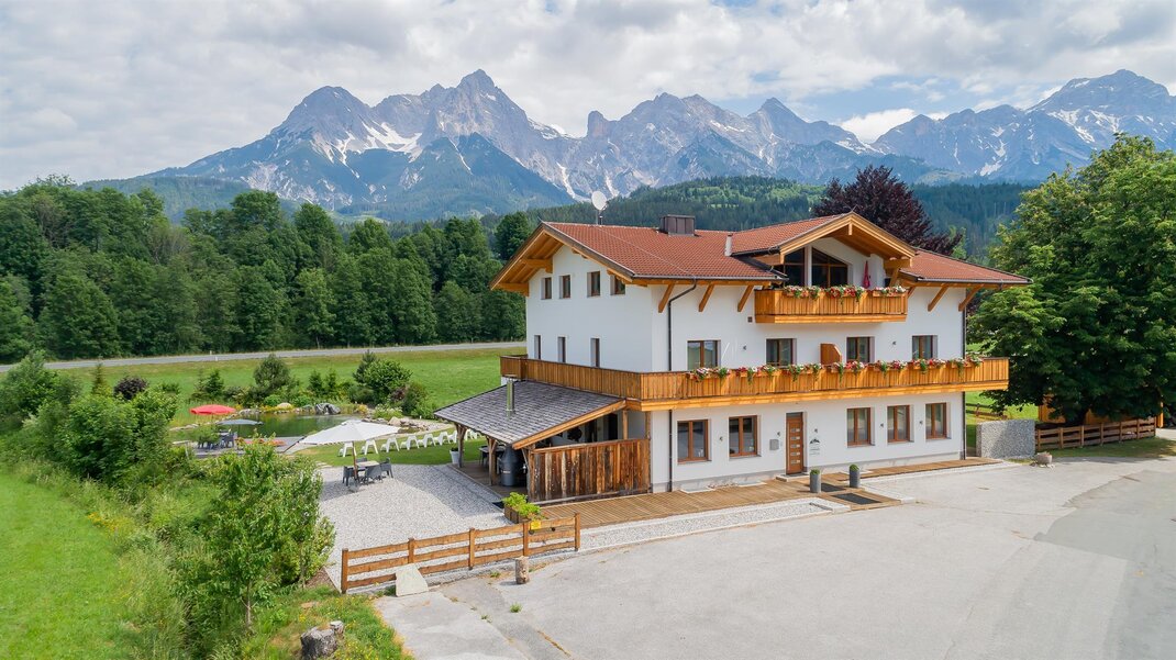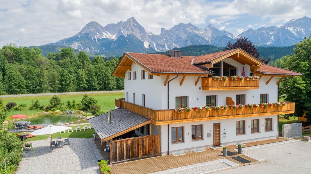 Die Ferienwohnung Natrun hat 72m² und befindet sich im Edgeschoss. Auf der Ostseite ist eine große Terrasse im Grünen, welche zum Entspannen einlädt. Wünderschöne Aussicht auf das Steinerne Meer.