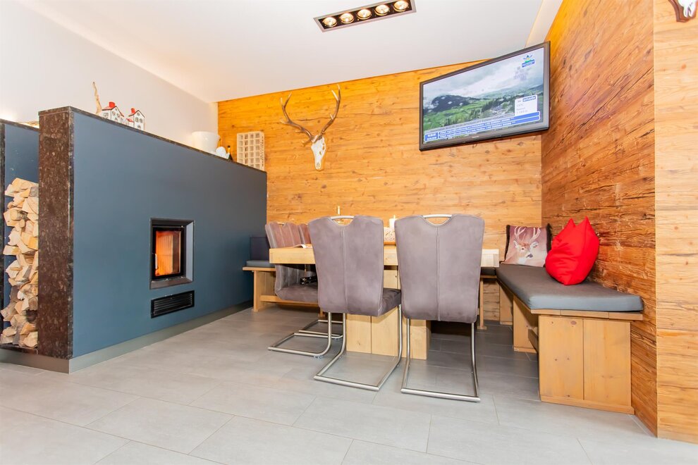 Die Ferienwohnung Hinterreit hat 78 m² und befindet sich im 1. Obergeschoß. Ost-Südbalkon mit Aussicht auf die Skipiste vom Hinterreit.