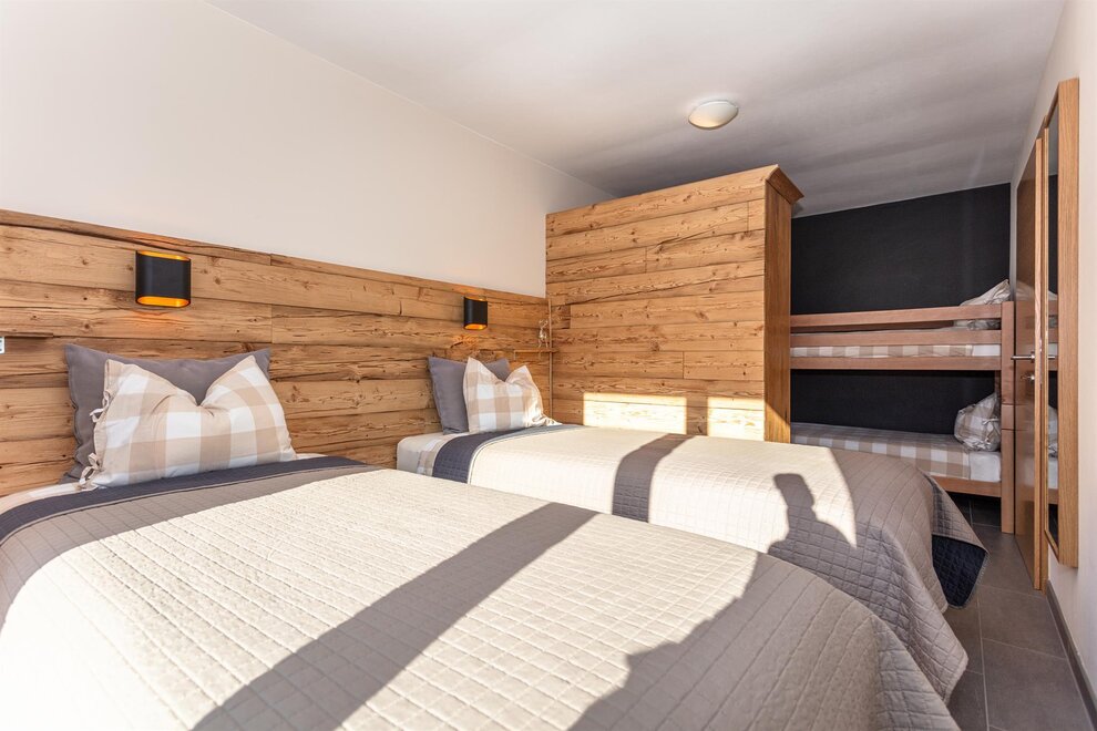 Jede Ferienwohnung verfügt über 2 Schlafzimmer, eines mit einem Doppelbett und eines mit 2 Boxsprings und 1 Etagenbett, sodass sie Platz für bis zu 6 Personen bieten.