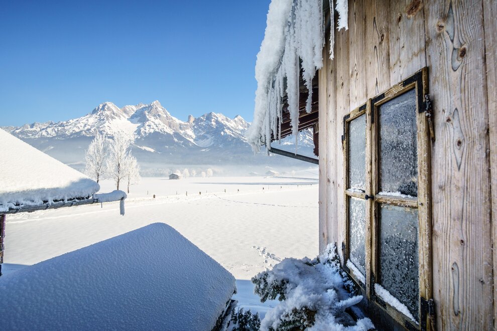 In einem über 300 Jahre alten Bauernhaus befinden sich diese komfortablen und modern mit Vollholz ausgestatteten Apartments. Das Gebäude liegt auf dem Gelände einer kleinen Bio-Landwirtschaft zwischen Saalfelden und Maria Alm. Der einzigartige Blick auf die weiten Felder und auf das atemberaubende Steinerne Meer sorgt für Ruhe vom Alltag. Zur weiteren Entspannung tragen die private Infrarotkabine im Apartment sowie die nebenangelegene Saunahütte bei. Das Bauernhaus wurde erst in 2015 komplett renoviert. Dabei wurde genau darauf geachtet, dass das traditionelle, einzigartige Ambiente des urigen Hauses erhalten bleibt.