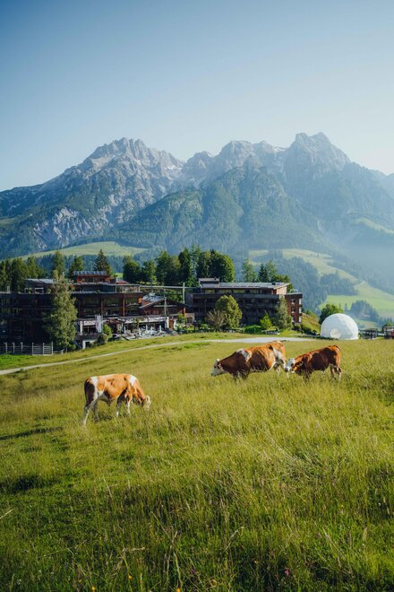 Hoch über Leogang im Salzburger Land liegt das Holzhotel Forsthofalm der Familie Widauer auf 1.050 Metern Seehöhe. Umgeben von Almwiesen und Wäldern fügt sich das Hotel sanft in die Landschaft ein und trägt die Natur durch seine Vollholzbauweise und Panoramaausrichtung spürbar nach innen. Nach dem Motto „Natur ist Freiheit“ bieten wir unseren Gästen an 365 Tagen im Jahr eine spannende Lebenswelt, die frei von Paradigmen, Normen und Gesetzen der Natur folgt.