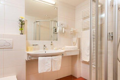 Das Einzelzimmer mit ca. 18m2 ist mit Bad oder Dusche/WC, Fön, Telefon, Kabel-TV mit Radio, Safe, Vorraum, Sitzecke und Balkon ausgestattet.