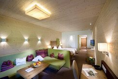 Das Doppelzimmer "Arnika" hat ca. 25m2 und ist mit Bad oder Dusche/WC, Fön, Telefon, Kabel-TV mit Radio, Safe, Vorraum, Sitzecke und Balkon ausgestattet.