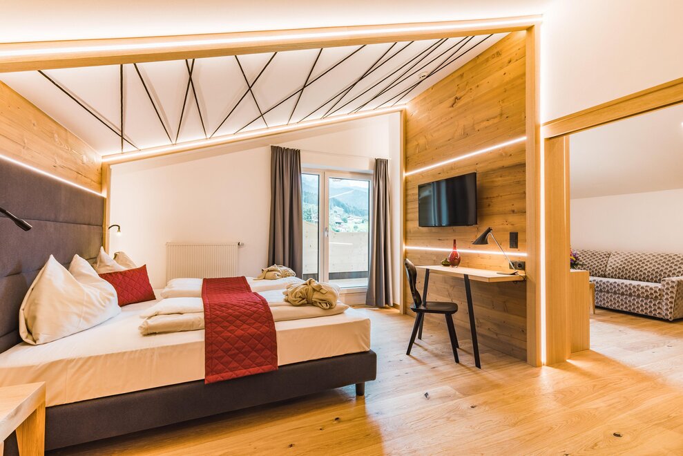 Das Nichtraucherzimmer SPORT befindet sich im "Steinleo" und ist mit Blick zu den Steinbergen oder nach süden zur Asitzgondel buchbar.
