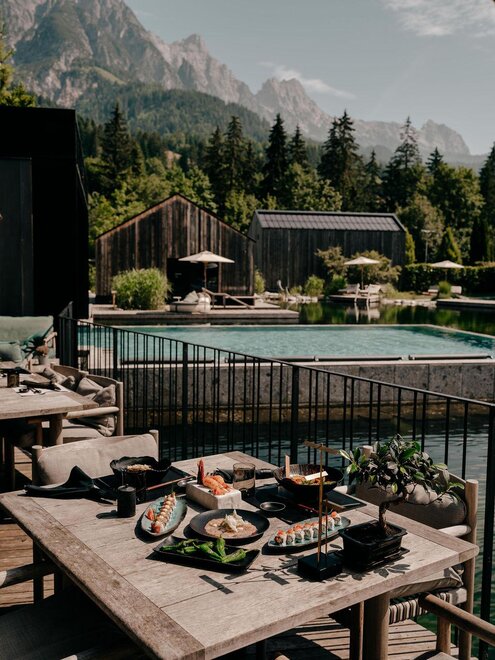 - Japanisches Restaurant Mizūmi: Direkt am Naturbadesee gelegen, bietet dieses Restaurant exquisites Sushi und weitere japanische Spezialitäten – kombiniert mit heimischen Zutaten. Ein besonderes Highlight ist die Showküche mit original japanischem Sushi-Koch.