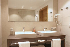 Dusche oder Badewanne, Doppelwaschbecken, Separates WC