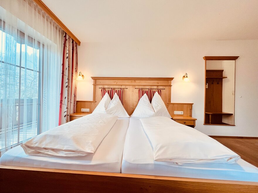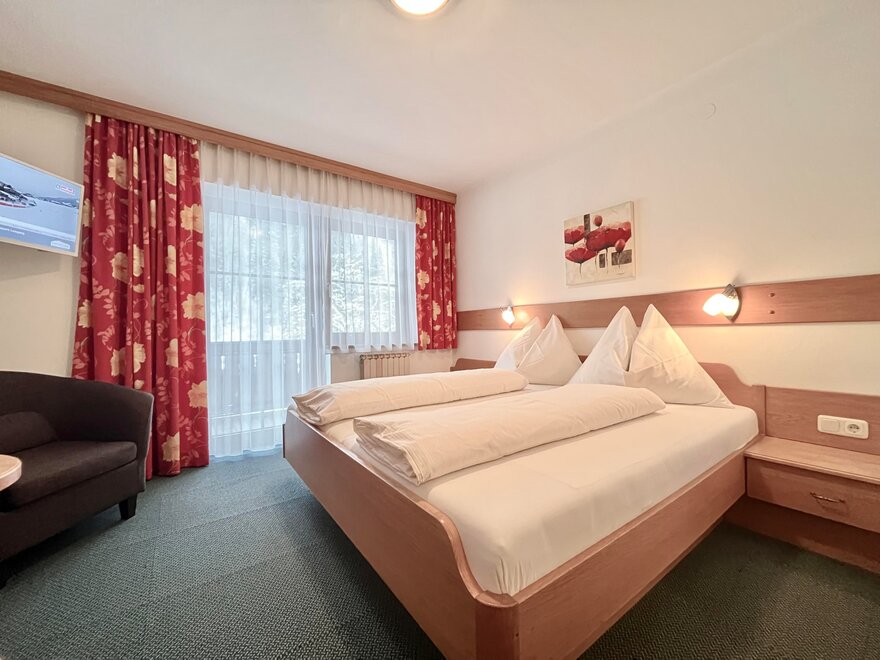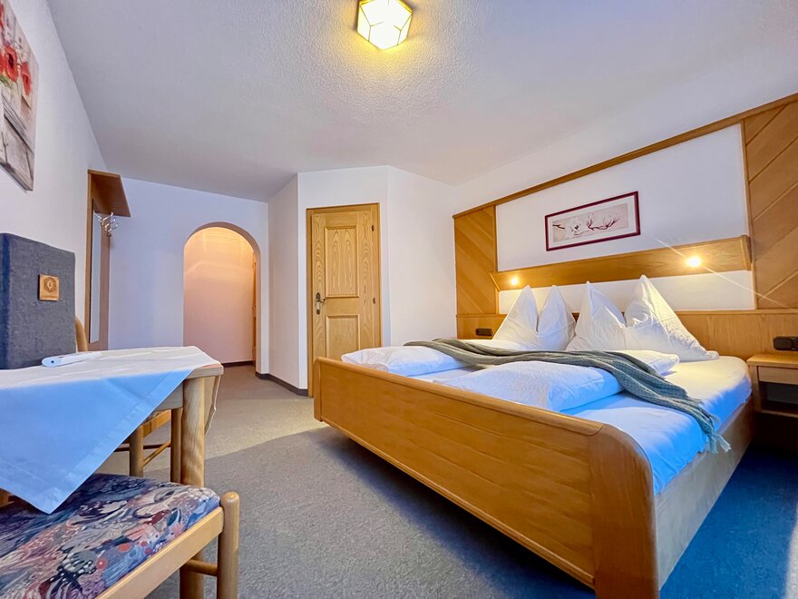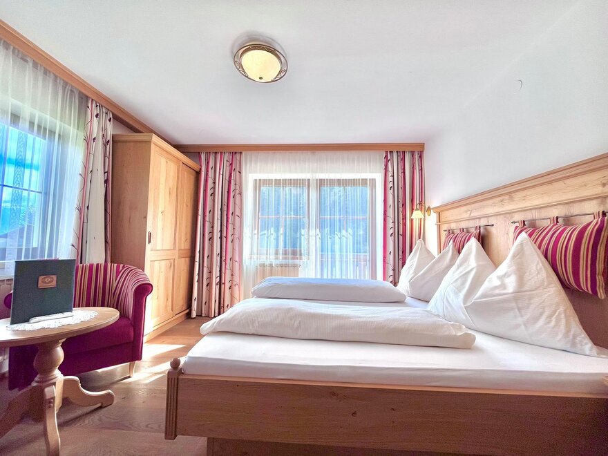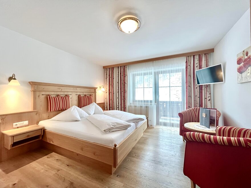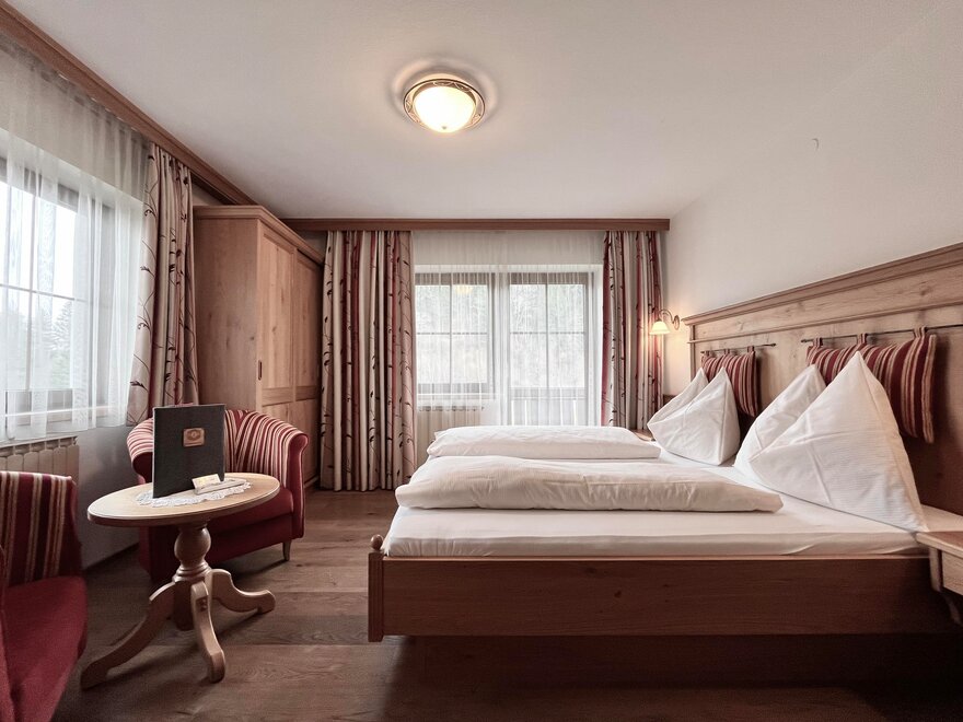 Unsere Doppelzimmer sind mit viel Alpinen Charm durch das Naturmaterial Holz eingerichtet. Alle Zimmer verfügen über eine Dusche, WC, Flat TV und freies WLAN im gesamten Haus.