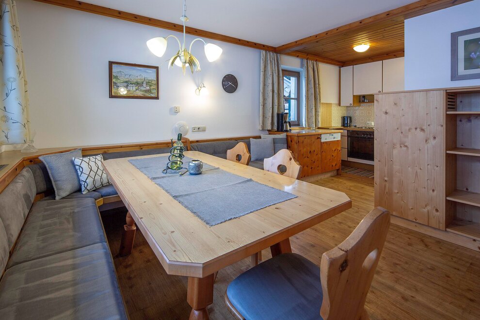 Im Obergeschoss, ostseitig, gemütliches Appartement, großer Balkon mit Freisitz, wunderbare Aussicht zu den umliegenden Steinbergen, abgeschlossene, gemütliche Wohnküche, 2 Dreibettzimmer, 2 Badezimmer, Vorraum, Kabel-TV, W-Lan, Geschirrspüler