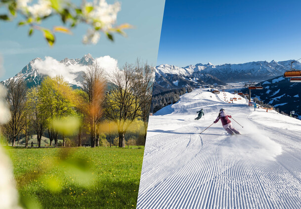 The towns of Saalfelden and Leogang stand for typical Austrian flair, a variety of activities, diverse events and numerous cultural highlights. Whether at the foot of the Steinernes Meer or surrounded by the Leoganger Steinberge and the Kitzbüheler Alps: the imposing mountains are your constant companions on your adventures through Salzburg's diversity. No matter if you are into active vacations with friends or family, or if you want to have a pleasure vacation with your loved ones. Saalfelden and Leogang convince with numerous summer and winter activities as well as pleasure experiences. In summer with the bike over hill and dale, on the rope vertically up rock faces or leisurely hikes through the dreamlike colorful summer landscape of Austria. Fans of the adrenaline kick should definitely experience the feeling of freedom during a ride on the Flying Fox XXL. In winter, endless skiing fun in the Skicircus Saalbach Hinterglemm Leogang Fieberbrunn, action in the snow parks and tobogganing fun are on the agenda.