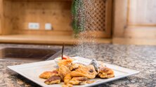 The next time, when you stop off at a mountain restaurant while skiing, your decision what you should eat, is not going to be very difficult: a Kaierschmarrn! The shredded pancakes, sprinkled with sugar smell so good, it's neraly impossible to resist. The Kaiserschmarrn is fluffy, and the apple sauce, cranberry jam or plum jam really are a highlight.