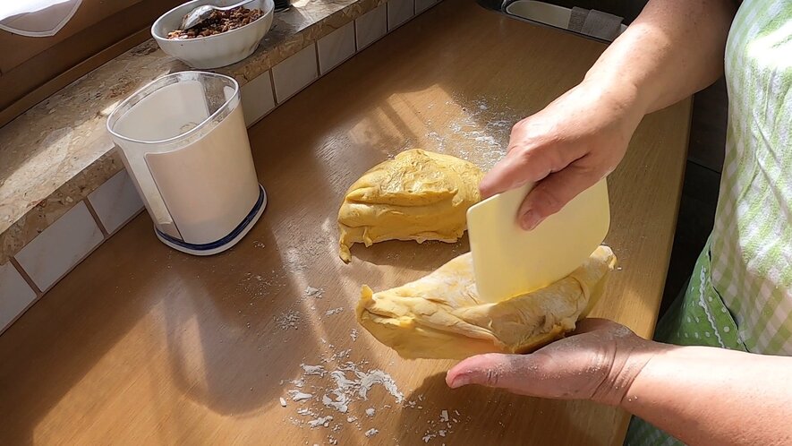 Wuchteln are being made out of yeast dough and when making a yeast dough, you have to be very patient. You can compare it to baking bread, where it is important to give the dough enough time to rest. Only after the dough got enough rest time, it will be fluffy and extremely tasty. Another important thing is that the dough should be protectet against draught while resting.