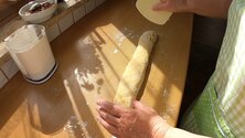 - When the dough is smooth and you can put it out of the bowl easily, sparkle it with flour, cover it again with a dishcloth and let it rest for about 30 minutes at a warm place without draught