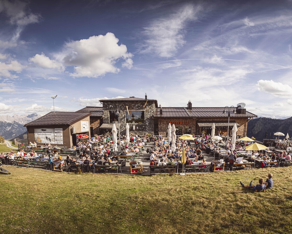 At an elevation of 1,760 meters, just a few steps away from the mountain station of the Leoganger Asitzbahn cable car and in the middle of the Skicircus Saalbach Hinterglemm Leogang, the AsitzBräu is the highest alpine beer palace in Europe and features a vast collection of original brewing equipment. Separated into three levels, a big beer hall and two sun terraces the AsitzBräu is the perfect location for a refreshing break or a unique event venue (also in the summer) for up to 500 people.