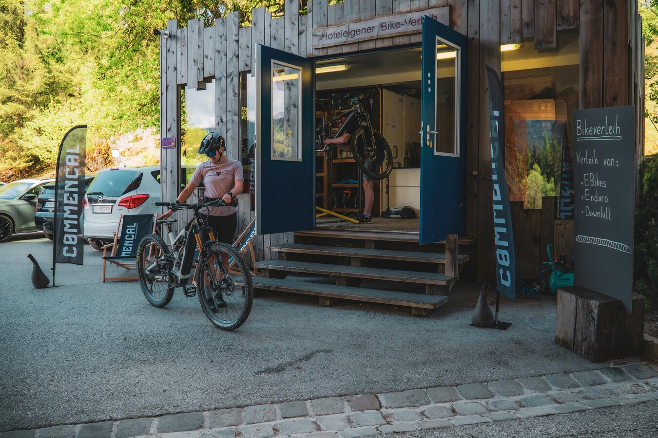 Located right in the heart of the Leogang Bike Park, the Holzhotel Forsthofalm bike rental shop offers top-of-the-line Commencal e-bikes and downhill bikes for rent. Bikes are also available for rent to non-hotel guests. Whether you’re looking to cruise leisurely through the Leogang mountains or race down the trails for an adrenaline rush—you’ll find the perfect bike for your style here.