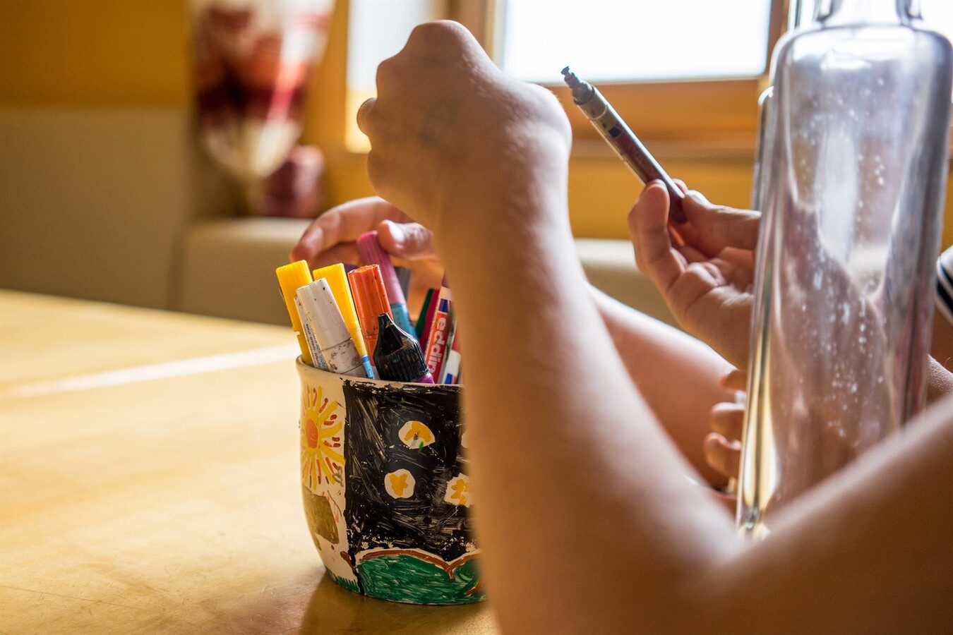 Through a process of painting, blotting, and daubing, a small work of art can soon be created. There is a wide range of different materials and objects available such as glass bottles that can be decorated by the young artists. The meeting point for the painting workshop is on Wednesday afternoons in the Senses Park, even if it happens to rain.
