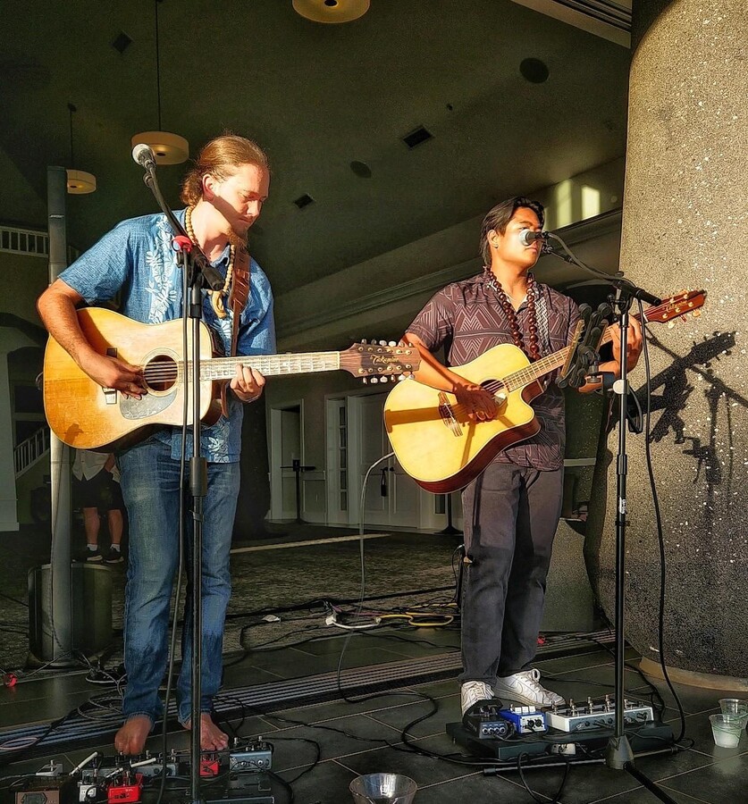 Ethan and Katie Villanueva, both raised on Maui, complement the performance with traditional hula. While Ethan combines music and dance on stage, Katie expresses the stories of Hawaii through graceful and powerful movements. Together, they share stories of nature, mythology and the deep connection between people and their land.