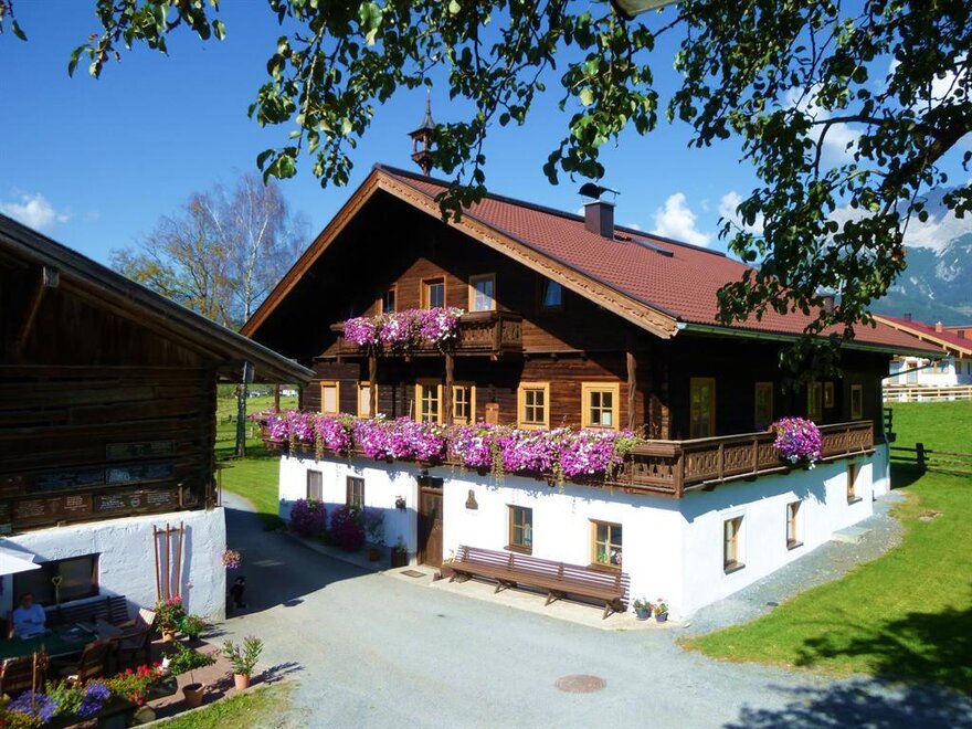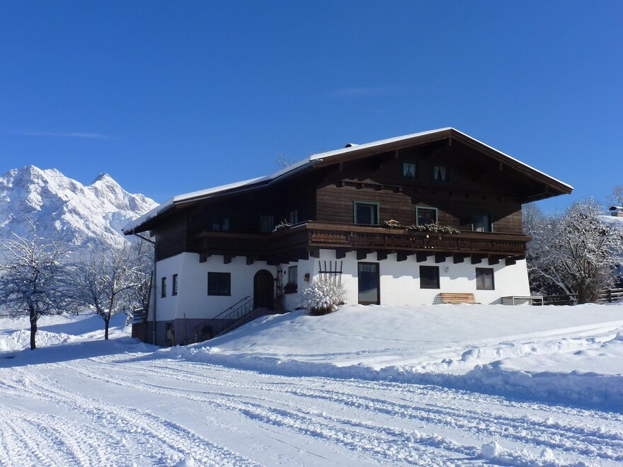 The holiday house is located directly within the farmyard of the „Herzogbauer“ at the foot of the Schwalbenwand. The apartment goes to the south. Our extra: our own toboggan run in winter. Fresh milk from our cows and visiting the stable are certainly inclusive. 2017 the apartment has been renovated completely. The "Hochkönig-Card" with many advantages is inclusive.