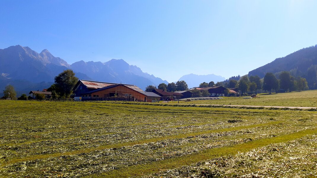 At the end of the village "Hof" (heading into the direction of Gerling) on the left side the last slip road.