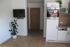 Unsere Wohnung ist 43m² groß. Sauber und modern ausgestattet. Die Wohnung bietet Schlafmöglichkeiten für 4 Personen. Ein 14 m² großes Schlafzimmer plus bequemes Schlafsofa im Ess- Wohnbereich. Die Küchenzeile ist mit Ceranfeld, Mikrowelle, Kühlschrank, Backrohr, Geschirrspühler und einer Kaffeemaschine ausgestattet. Im Ess-Wohnzimmer befindet sich ein Fernseher mit Kabelanschluss. In der gesamten Wohnung haben Sie kostenlos Wlan. Die Wohnung ist mit Aussenjalousien ausgestattet. Auf den 10 m² großen Balkon sind Gartenmöbel und ein Wäscheständer vorhanden. Die nächste Bushaltestelle ist in 2 Minuten zu Fuß erreichbar.