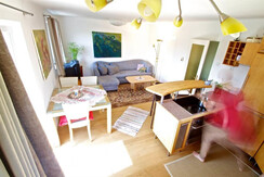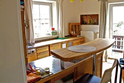 Holiday apartment with studio in the house of an artist! Completely 1st floor, 80m² with kitchen-livingroom, bedroom, bath, WC and studio suitably for 2-4 people or also for single. The house in the midst of a nice garden, lies quietly with the local edge of Saalfelden. Nice look at the everlasting ice of the Kitzsteinhorn and the surrounding mountain world of the Steinernen Meer. Saalfelden and surroundings offer many leisure possibilities, sports possibilities and recreational possibilities. The entrance in the cross-country ski track immediately begins behind the garden gate. The ski area Saalbach-Leogang-Fieberbrunn lies in 6km, the entrance to the ski area Hochkönig 5km. Ski tours and mountain hikes with the host are possible!