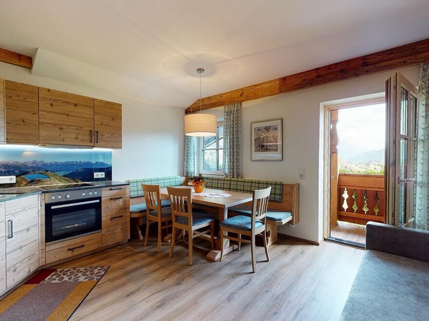 Typ: App. Spielberg:Genießen Sie gemütliche Stunden in dem neu errichteten Appartement. Heimisches Holz verleiht dem Zimmer eine gemütliche Atmosphäre. Unser neues Appartement ist mit einer gut ausgestatteten Küche, Kabel-TV, Safe, WLAN, einen Schlafzimmer, ein Ausziehsofa, Dusche, WC, Balkon mit Blick auf den Erlebnisberg Asitz ausgestattet.