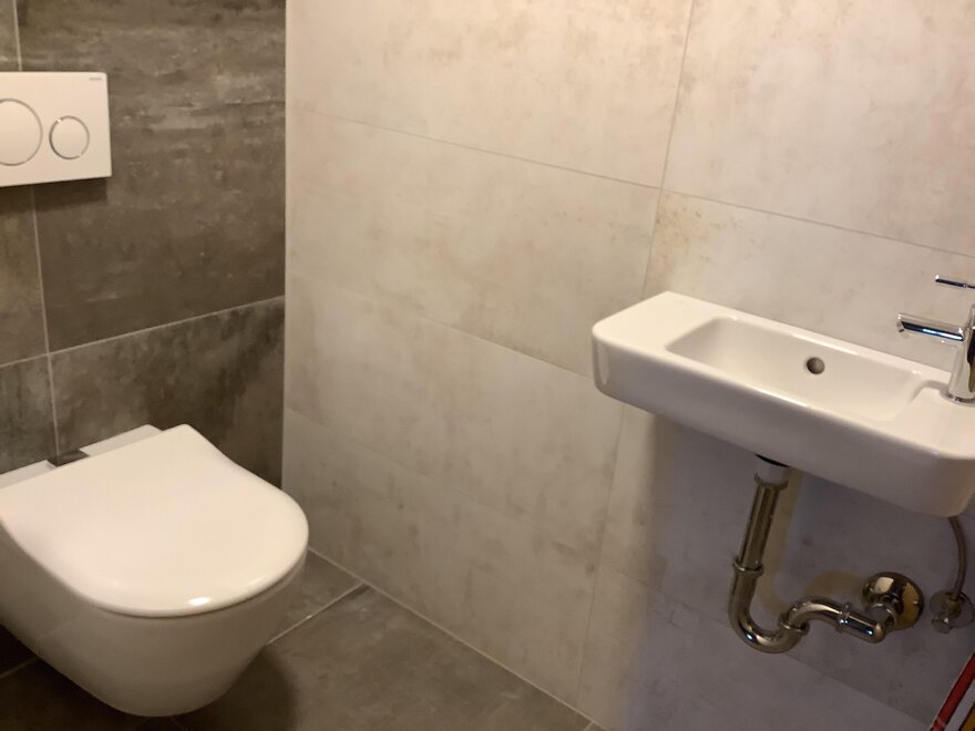 double sink, separate toilet, running hot/cold water, shared toilet, shower, toilet, bath