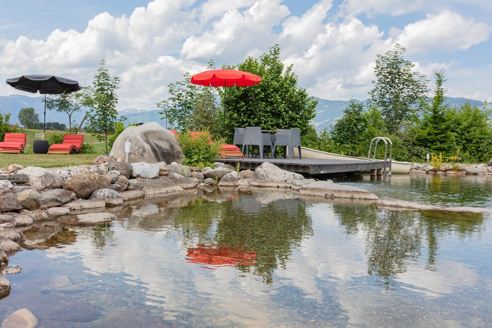 You can relax on the sunbathing lawn at our natural swimming pond. 300m² of swimming fun, and we´ve even thought of little ones wih a non-swimmers´area.