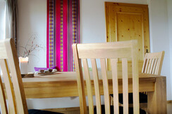 coffeemaker, freezer compartment, living room, radio, TV, DVD player, electric stove, bed linen (non-allergenic), balcony furniture, dish sink, balcony, highchair, refrigerator, bed linen available, quiet room/apartment, towels available, refrigerators available, toaster, non-smoking room/apt., pets permitted on request, vent hood, kitchen, cable TV, dishes available, central heating, garden, kettle