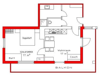 Non-smoking appartment ca 45 m² for 2-3 persons. One 3-bed-room with safe, bathroom with shower, extra toilet. The kitchen is fully equippd with cooker, oven, dishwasher, coffeemachine, tv, radio, free WLAN and a sofa (140 cm wide). Washing clothes is possible. Big sunny balkony for your own. handtowels, bread-service