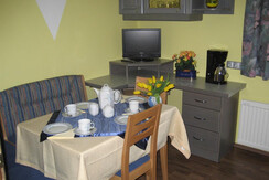 radio, WiFi, cable TV, heater, cooking possibilities, socket close to bed, non-smoking room/apt., hairdryer, towels available, desk, baby change pad, balcony furniture, TV, open plan kitchen/living room, separate bedroom/s: 2, balcony, refrigerator, kitchen utensils, bed linen available, kettle, separate bedroom/living room, dishes available, refrigerators available, oven, open foot-end of bed, coffeemaker, dish sink, kitchen, room/apt. larger (m²): 60, electric stove, anteroom, meadow, no pets allowed, quiet room/apartment, highchair