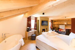 fireplace, roof terrace or a large balcony with panoramic mountain views and a free-standing bathtub are Standard