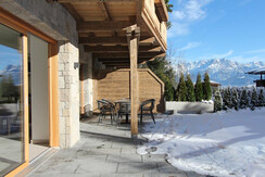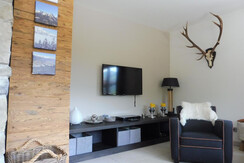 This apartment is equipped for 6 persons and is beautifully designed in combination with nice wooden accents. The large living room with much daylight has a large dining table, a comfortable sitting area with fireplace and offers direct access tot the terrace and the garden. The complete kitchen is modern and fully equipped with everything you need. In this apartment on the ground floor you have 3 bedrooms, 2 bathrooms both with shower and toilet. The Apartment is 95m2 and the terrace is 33m2. This building is located in a quiet area with a beautiful view and the ski area Leogang-Saalbach-Hinterglemm-Fieberbrunn is next to you. Ski-in and ski-out is possible because of the new Steinbergbahn (2014), this is only 50 metres away.