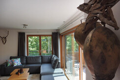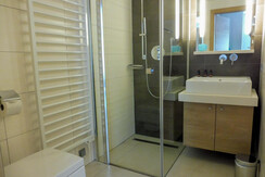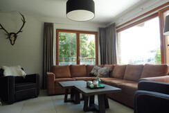 This apartment is equipped for 6 persons and is beautifully designed in combination with nice wooden accents. The large livingroom with much daylight has a large dining table and comfortable sitting area where you can relax. You also have a terrace and a large sunny garden. The complete kitchen is modern and fully equipped with everything you need. You have 3 bedrooms, 2 bathrooms, both with shower and toilet and you also have a separate toilet. The apartment is 95m2 and the terrace in the garden is 33m2. This building is located in a quiet area with a beautiful view and the ski area Leogang-Saalbach-Hinterglemm-Fieberbrunn is next to you. Ski-in and ski-out is possible because of the new Steinbergbahn (2014), this is only 50 metres away.