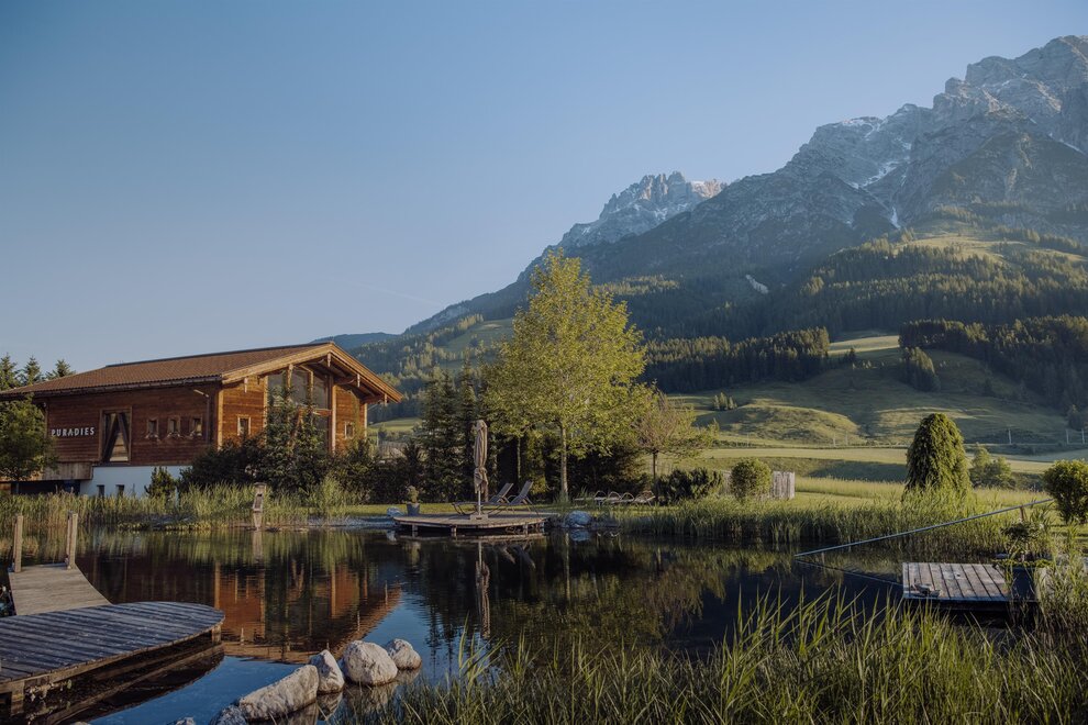 Amid the impressive Leogang mountain world, on a sunny high plateau between the Asitz and Steinberg lifts, lies the Naturresort Puradies – a retreat for all those who want to feel nature and live quality. On over 300,000 m² in an absolutely secluded location, a car-free area unfolds full of peace, space, and freedom. Here, alpine originality, lived sustainability, and stylish comfort combine to create a very special holiday experience – true to the motto: Everything is possible, nothing is a must.