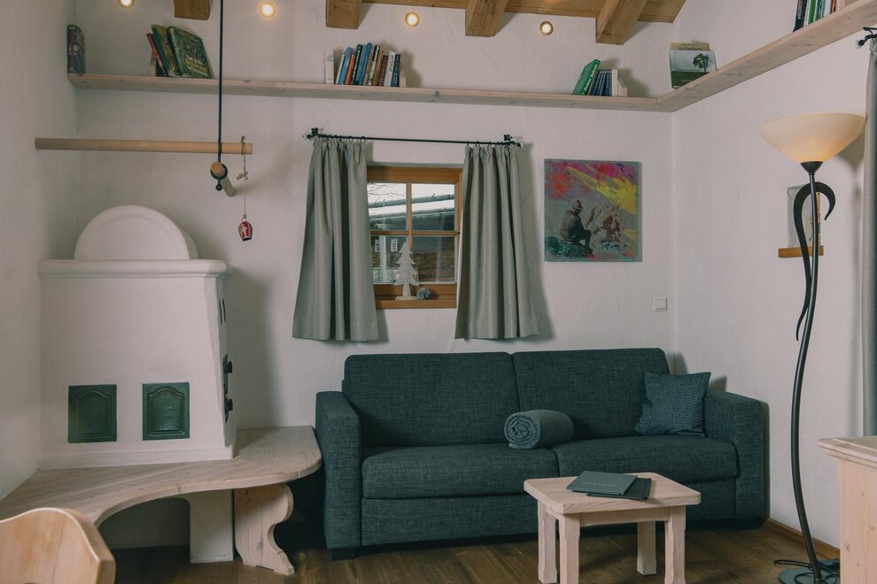The Puradies Deluxe Suite offers 35 m² of space for 1 to 3 persons and features a stylish living and sleeping area with a daybed. It includes an experience shower, a balcony or terrace, and modern amenities such as air conditioning, Wi-Fi, and a coffee machine for a comfortable stay.