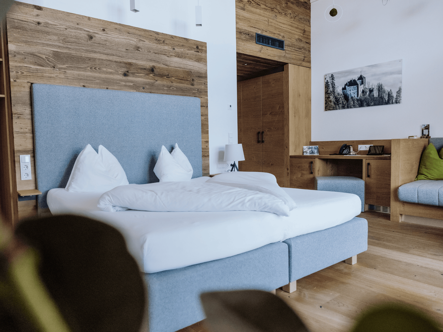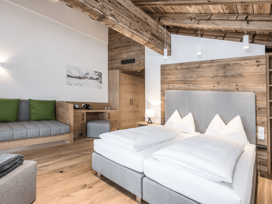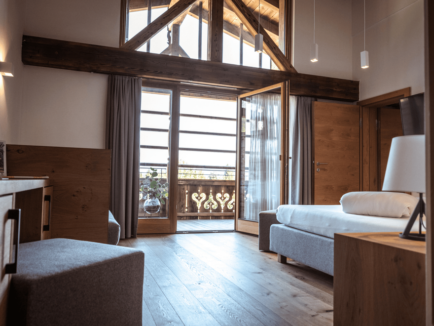 76 stylish suites and family rooms offer space for 2–6 people – with generous beds, spacious terraces, and timeless design made from natural materials.