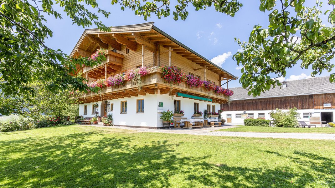 From Oberhaslinghof, gaze upon a magnificent panorama of the surrounding mountain scenery and enjoy the absolute tranquility of its secluded location. Nestled within the gentle meadows and nearby forest, our farm is the perfect place for families and nature lovers seeking relaxation and fun.