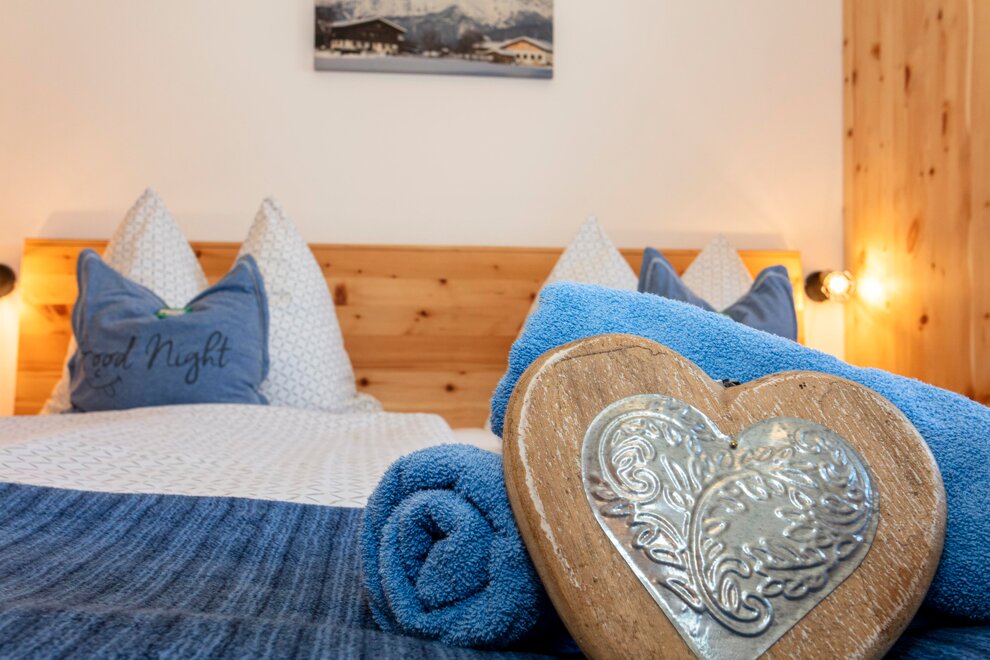 2-5 persons (60 sqm): 1 double room, large living room with couch, seperate, flanking double room with extra shower/WC and balcony. Completely appointed kitchen living with fridge, microwave, coffee machine, water boiler; shower/WC, balcony, cable TV, radio and is located on the first floor of the house. Fantastic view to the Saalfelden's home mountain called "Biberg".