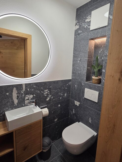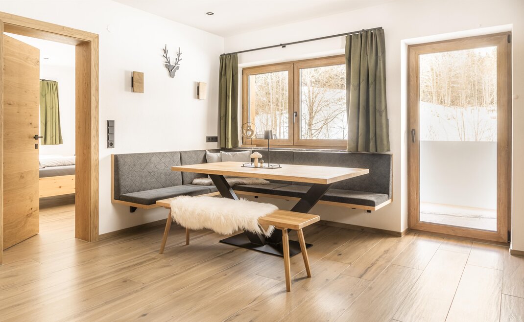 The Jagastüberl holiday apartment offers space for the whole family. It features two double rooms, a bathroom with shower, a separate WC, and a cozy living kitchen. From the spacious terrace, you have a beautiful view of nature – ideal for relaxing and enjoying.