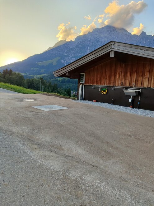 Welcome to the Bichlhof in Leogang. Our small but nice motorhome parking space is open all year round. Away from the tourist hotspots of Leogang, our breathtaking view of the Steinberge invites you to relax and unwind. The center of Leogang is only a few minutes' walk away. The nearest grocery store is 1.2 km away and the swimming pool is a 15-minute walk away. Numerous hikes start directly from the farm, and the nearest bus stop is only 5 minutes away. In winter our campsite is located directly at the Schteil lift. Our pitches are equipped with electricity, fresh water and WiFi. We also have a disposal station for gray and black water.