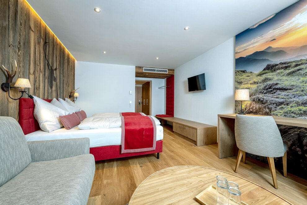 Delightful wellness oasis with indoor swimming pool, spacious relaxation rooms, infrared cabin, solarium, beauty treatments, various baths, fitness room, seminar rooms. Skittles, billiard, riding horses and ponies, table tennis, right next to the cross-country ski track and the Tauern bike route, spacious lawn for sunbathing, two 18-hole golf courses in the immediate vicinity, curling, hotel-owned alpine cabin. Familyfriendly, wheelchair adapted, homegrown products, hunting and fishing. 5-course menu of your choice with salad bar. Ideal setting-off point for hikes, bike tours and various excursions.