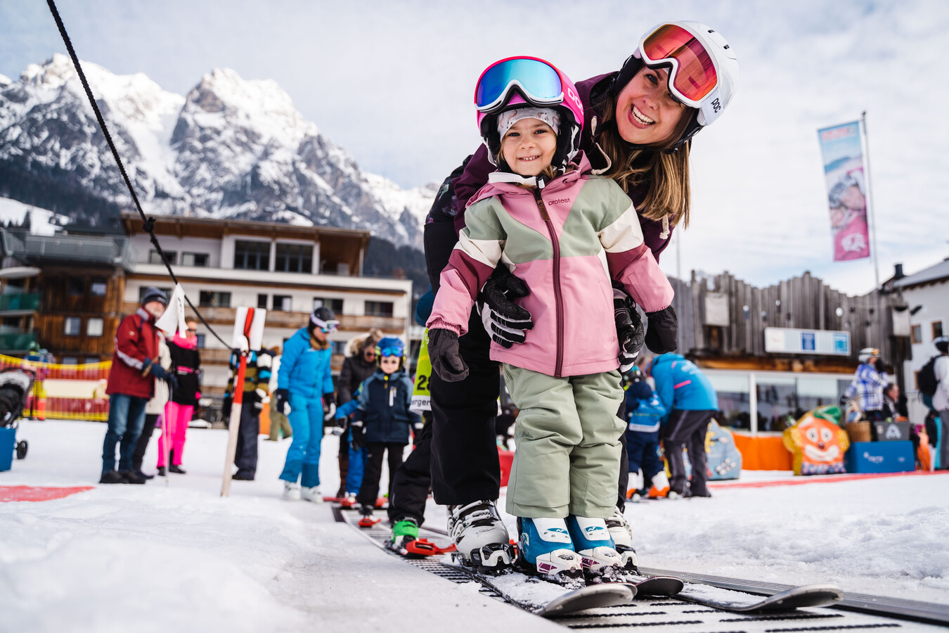 7 magic carpets bring the kids up to different child-friendly slopes. The next step is the Kinderkarussell. All okay so far? Then it’s time to get the special ticket and head off to the practice lifts: the Kraller, Riederfeld, Schantei and Übungslift.