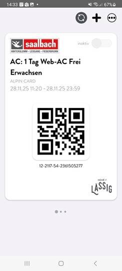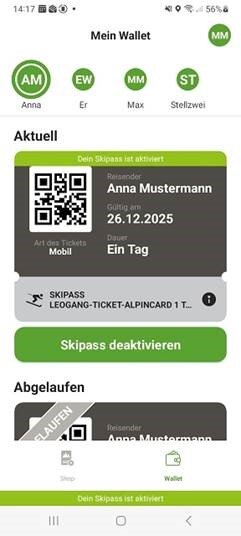 Öffne dazu in der MountainTicket App dein Smartphone-Ticket → du siehst den QR-Code bereits im Wallet-Status.